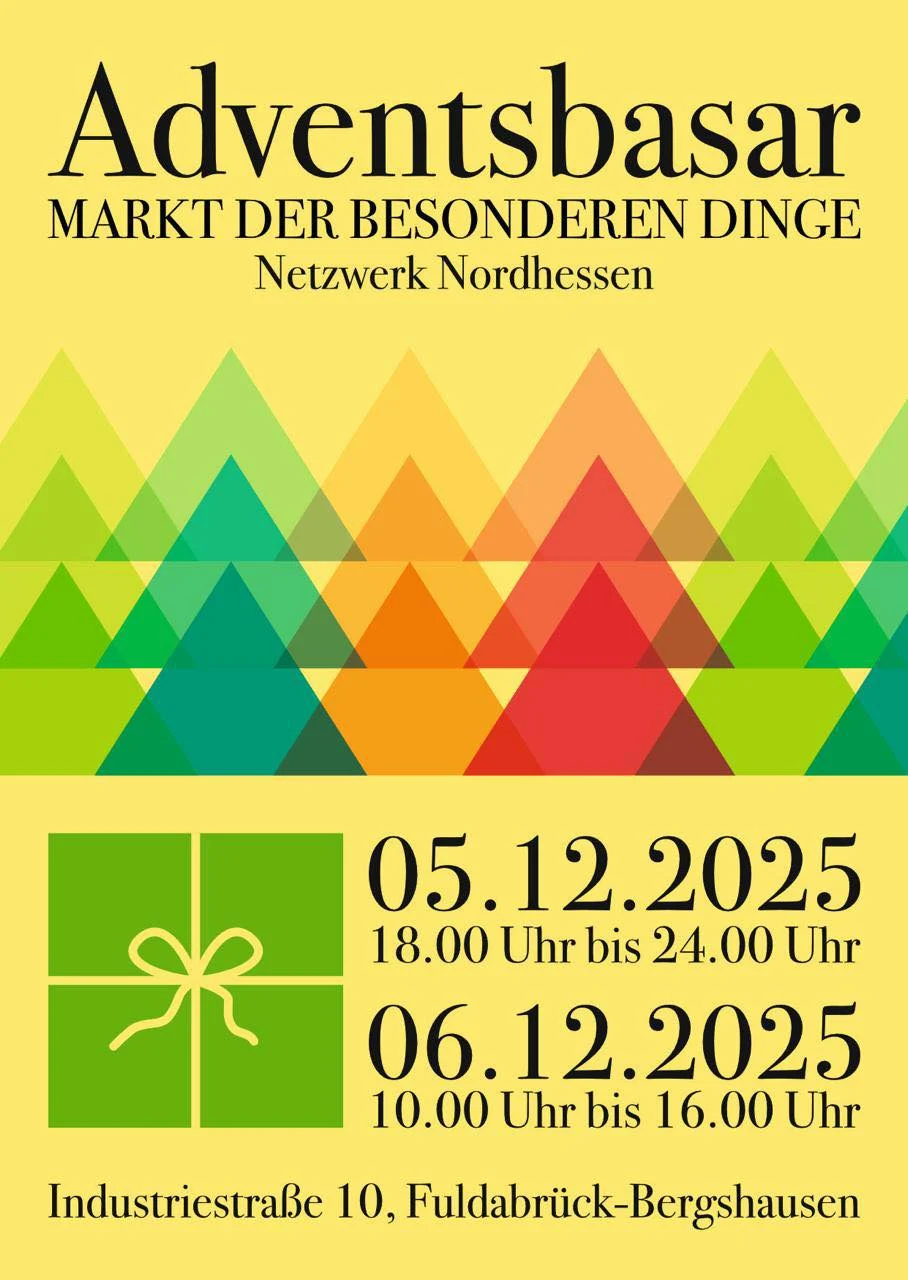 Am Freitag, 05.12.25 von 18.00-24.00 Uhr und Samstag, 06.12.25 von 10.00-16.00 Uhr präsentiert das Netzwerk Nordhessen den 1. Advents-Basar in der Halle der Firma Eisenbach in Bergshausen. Hier bieten sich im Rahmen des Advents-Basars ganz besondere Gelegenheiten zum außergewöhnlichen Christmas Shopping, Auf die Besucherinnen und Besucher wartet ein vielfältiges Portfolio besonderer Geschenke für jung und alt. Ob Kunsthandwerk, (Leucht-) Bilder, Comics, hochwertige Spirituosen, Filmplakate, Bonsai, Dekoartikel, Modellbau, Graffitis, Musikinstrumente, Spiele, Schallplatten, Skateboards und vieles mehr verleihen diesem Event einen besonderen Glanz. Neben den privaten Ausstellern sind u.a. folgende unserer Netzwerkpartner mit dabei (teilweise nur am Freitag): Farm Sound - Zwehrener Modellbaulädchen - Achterwind - Reichelts - [ ... ]